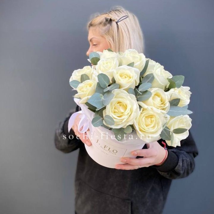 37 белых роз в боксе