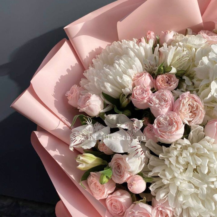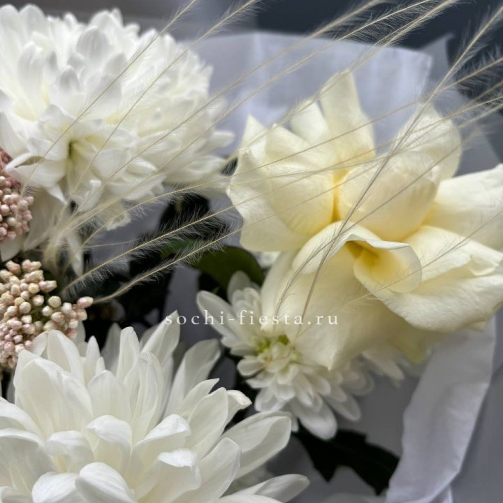 Букет хризантем и роз вайт шотс