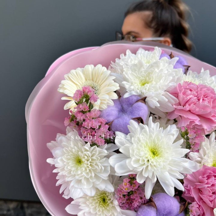 Букет хризантем и диантусов "Воздушный"