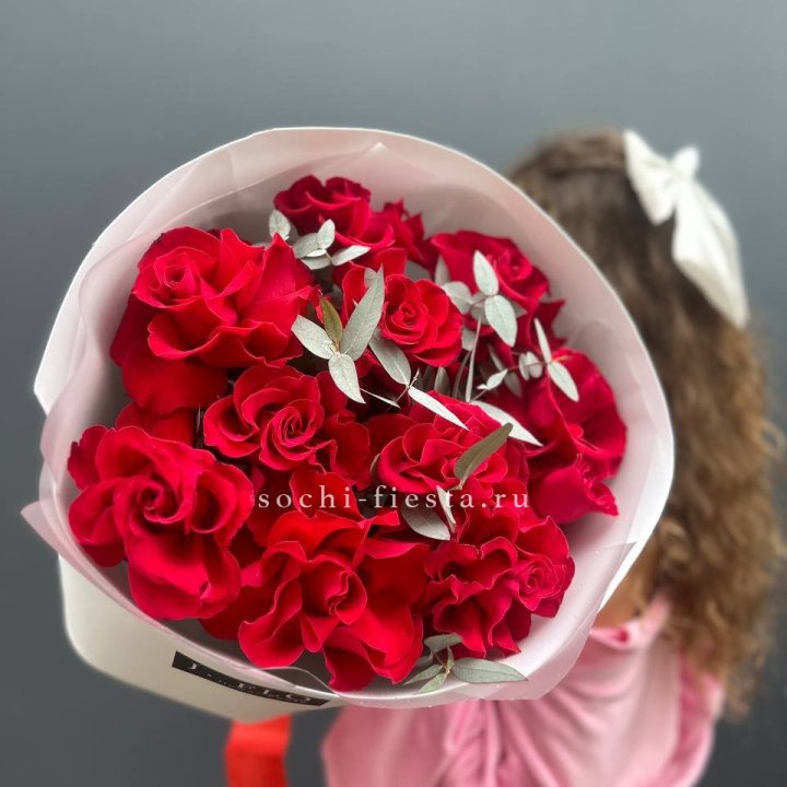 15 красных роз под ленту