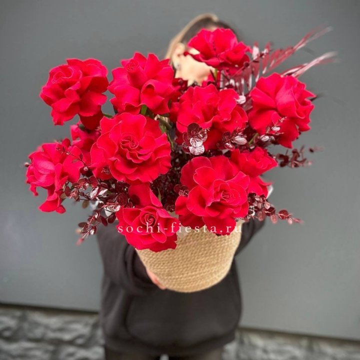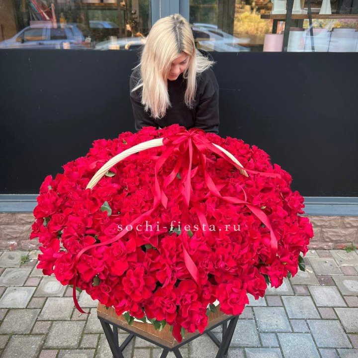 101 красная роза в корзине