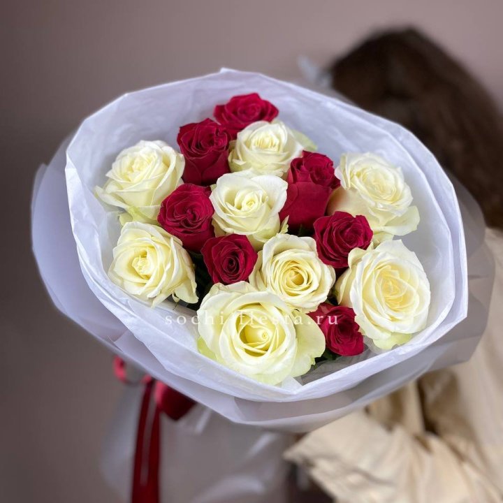 Букет из красных белых 15 роз