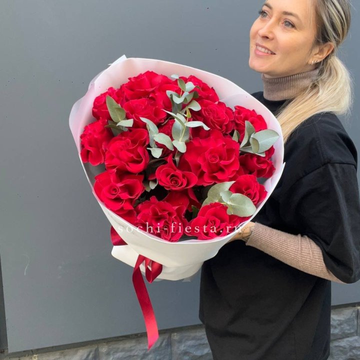 25 высоких красных роз