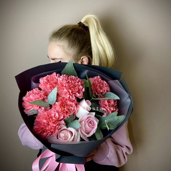 Букет из роз и диантусов "Пенелопа"