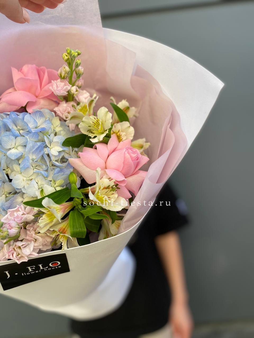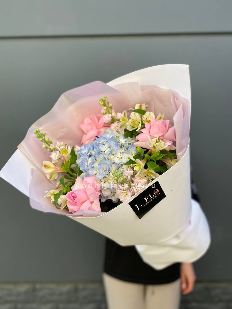 гортензия, бомбастик, эвкалипт, авторское оформление.