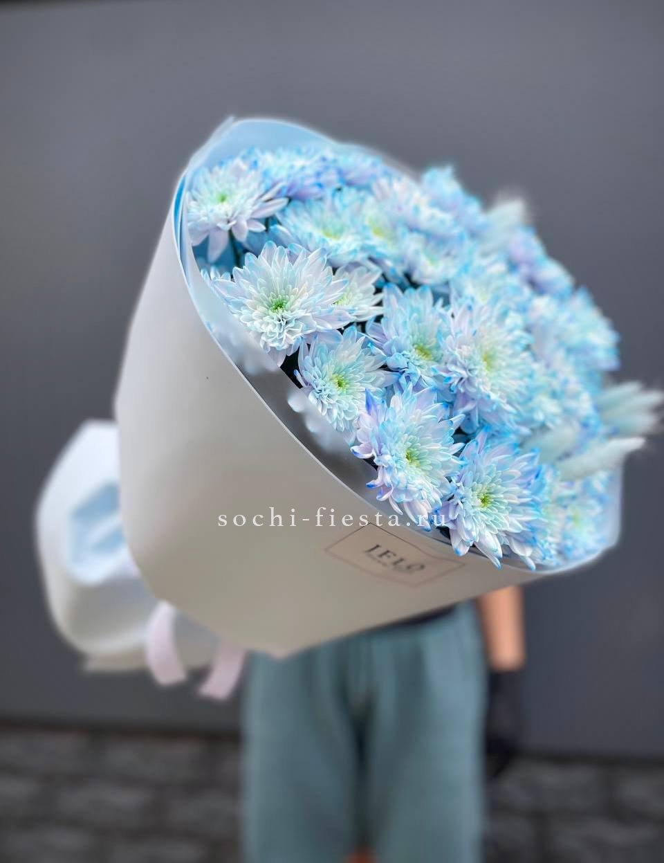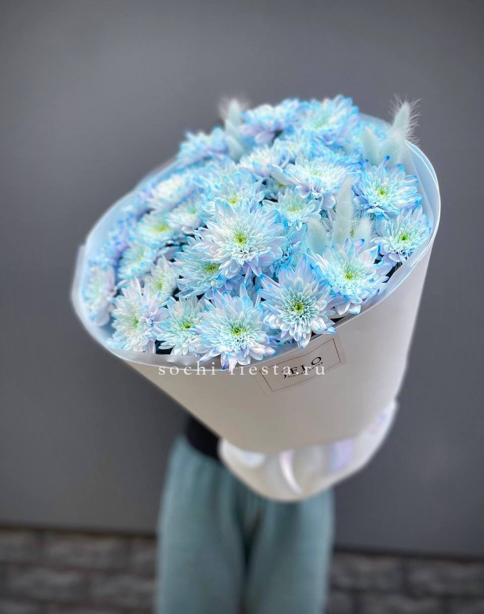 хризантемы, герберы, упаковка, лента.