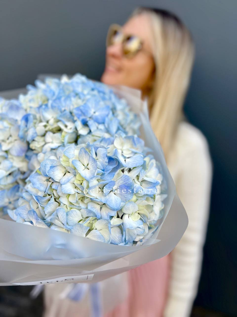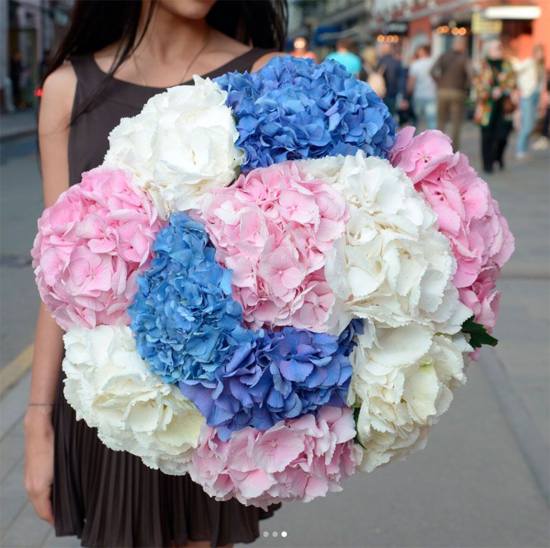 гортензия - 7 шт., лента, дизайнерская упаковка.
