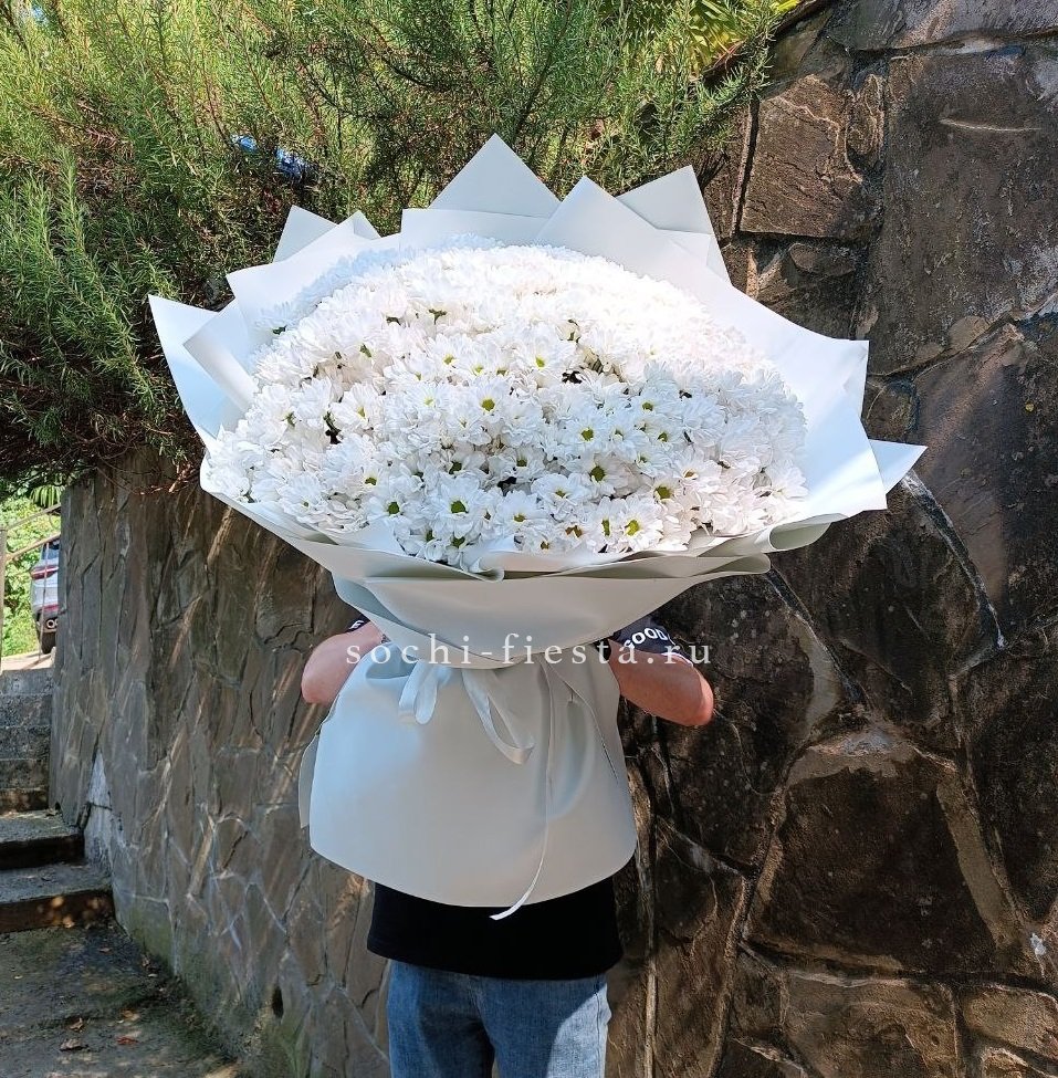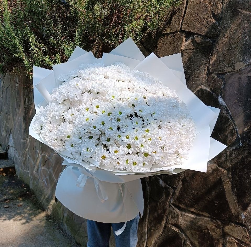 Одиннадцать веток кустовой хризантемы с множеством бутонов разной степени раскрытия. Воздушная композиция долго сохраняет свежесть и радует обилием мелких соцветий в лаконичной упаковке.