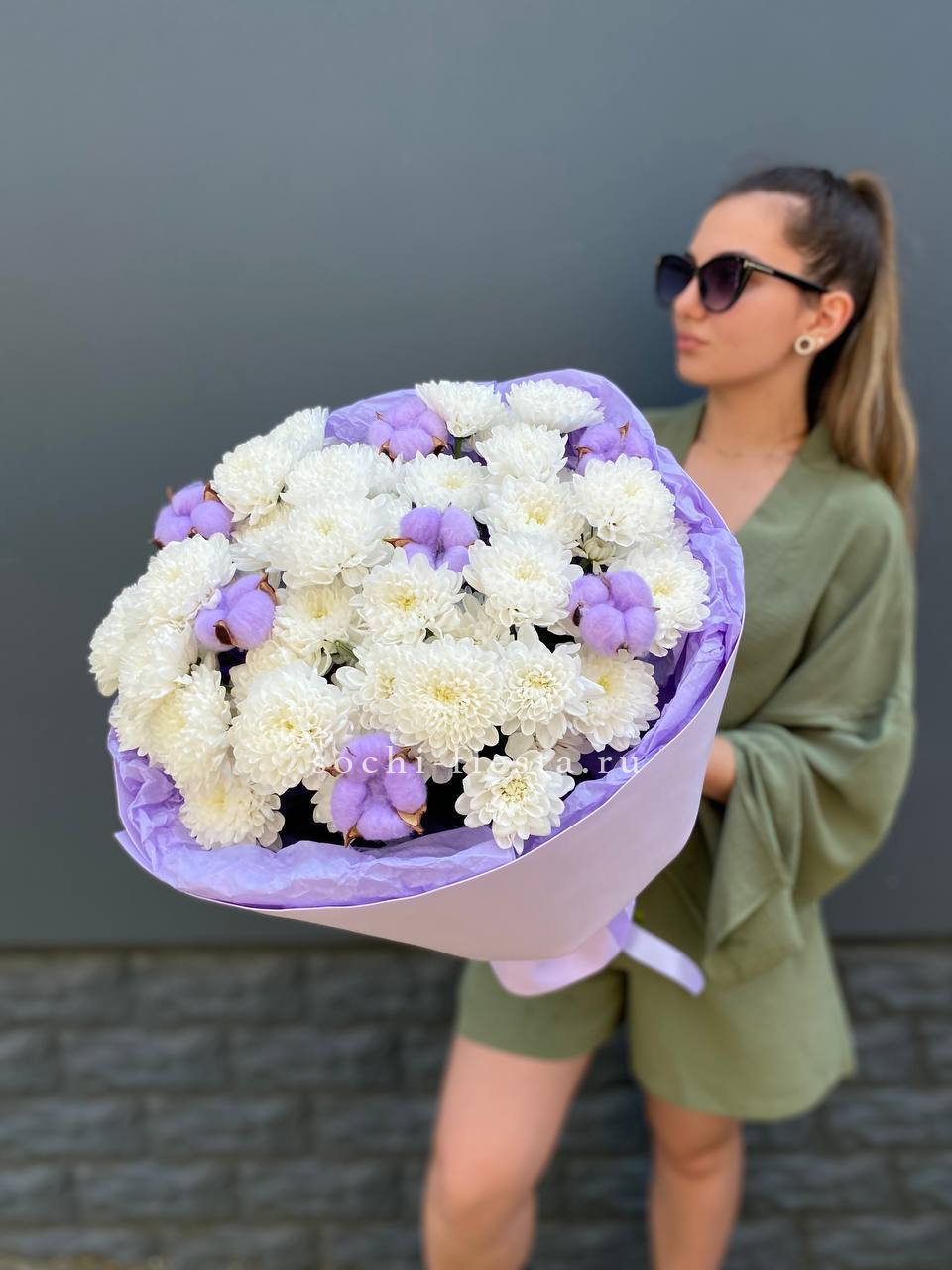 Для заказа товара " Букет хризантем и хлопка" с доставкой в Абакане нажмите в корзину