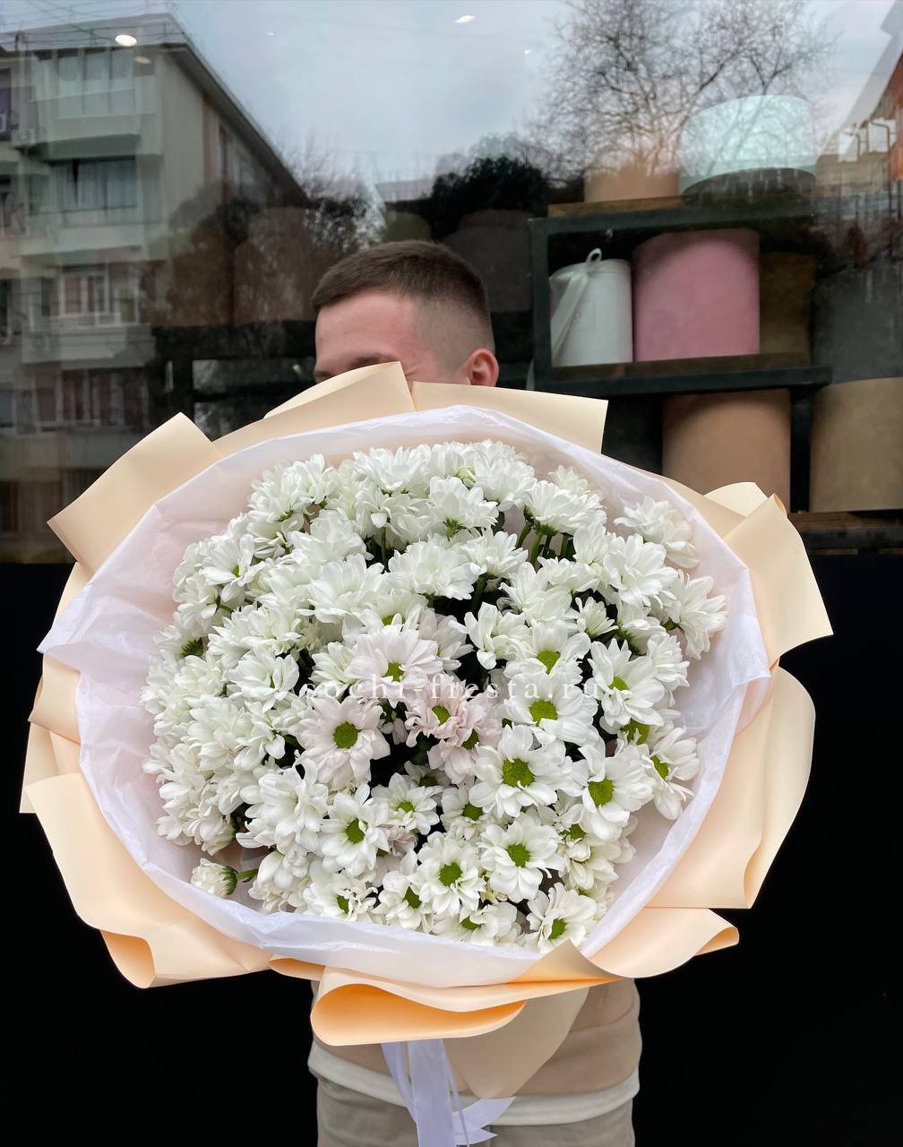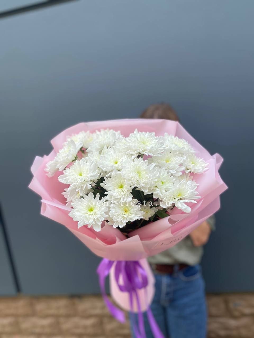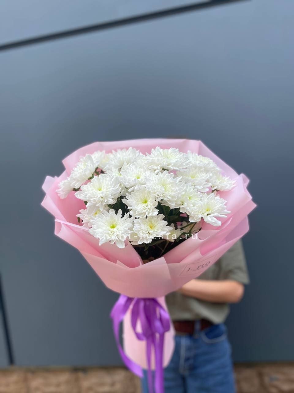 хризантема одноголовая - 9 шт., лента, дизайнерская упаковка.
