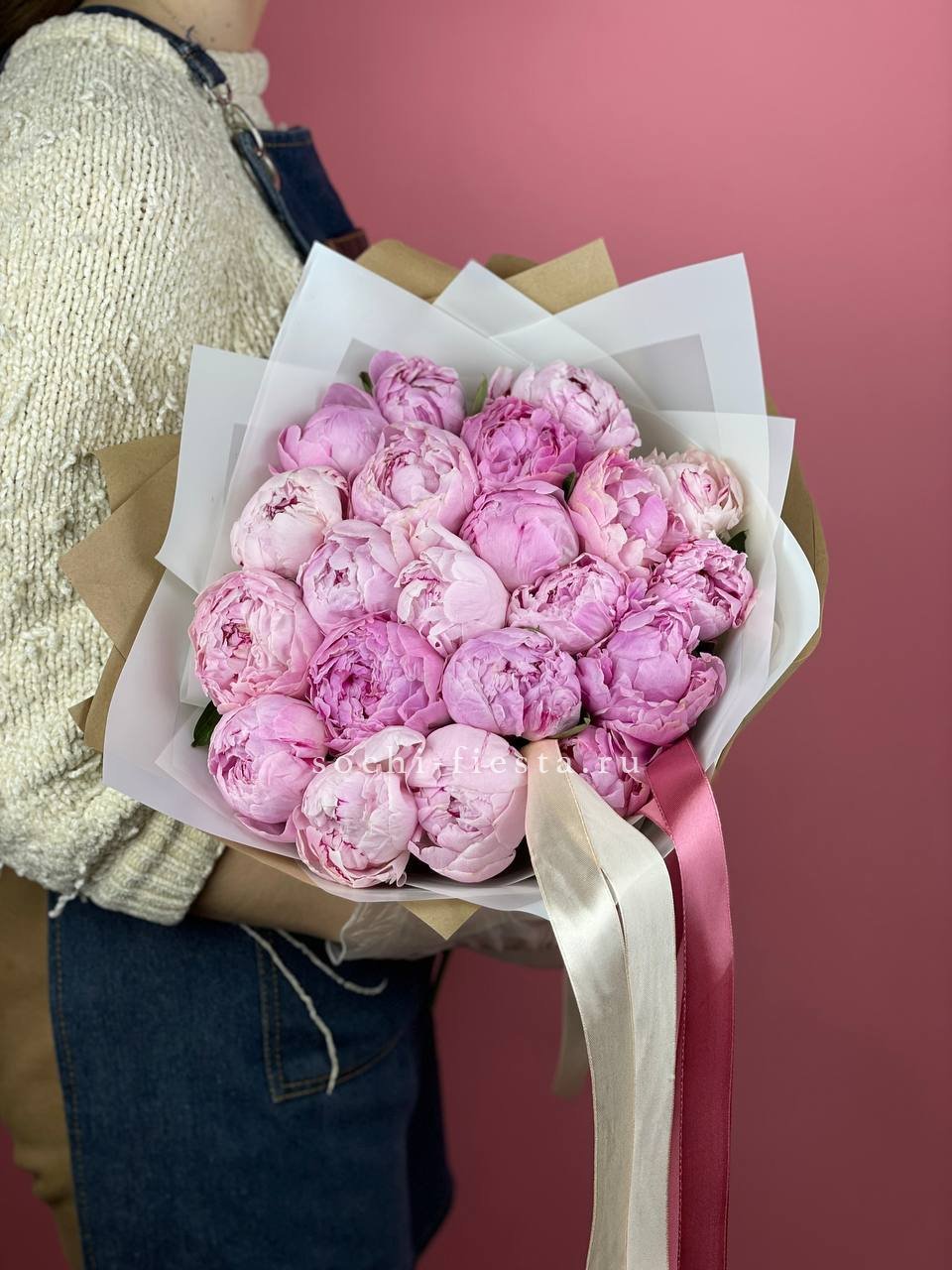 Двадцать один бутон собран в плотную шапку, где каждый лепесток находит своё место. Объёмная композиция заполняет пространство мягкими оттенками и густой фактурой. Упаковка держит форму и подчёркивает округлость силуэта.