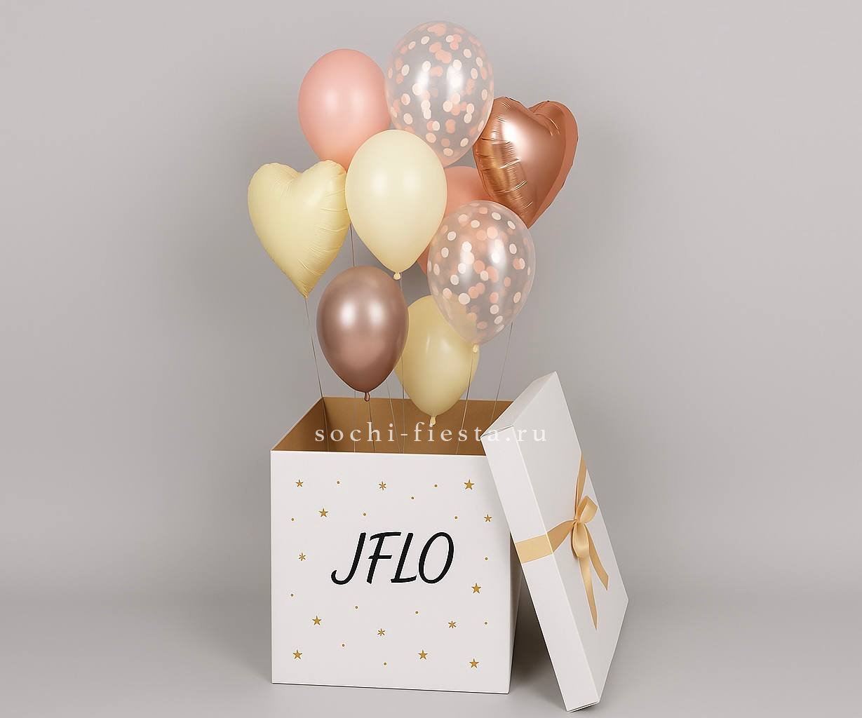 облако гелиевых шаров среднего размера, выполненное из 19 шаров нежно-розовых и нейтральных оттенков, грузик.