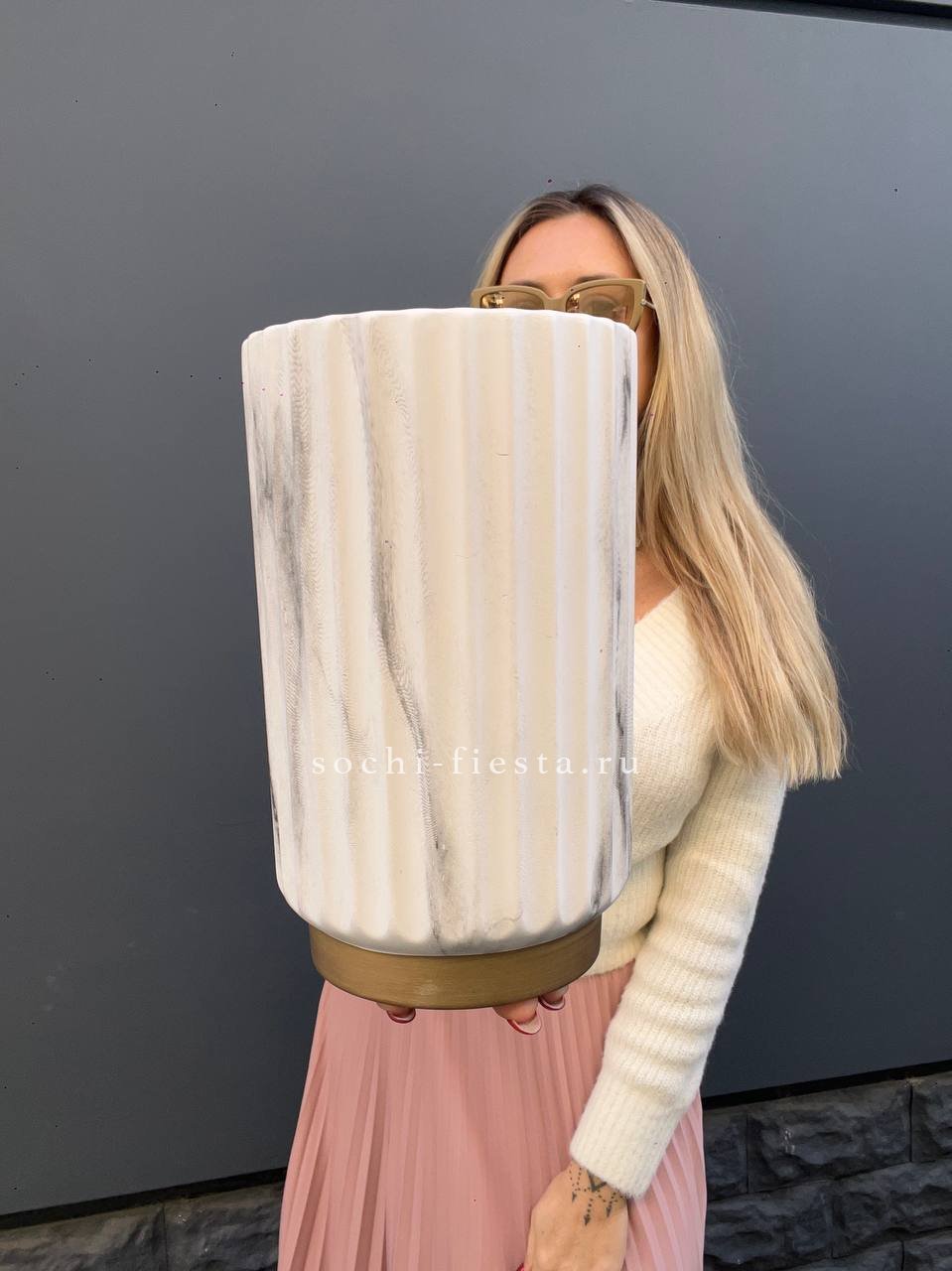 особенностью этой модели является лаконичный внешний вид. Благодаря универсальному цвету, она гармонично впишется и добавит уюта в пространство любой комнаты. В нее можно наливать воду под живые цветы или ставить сухоцветы. Благодаря широкому горлышку она проста в уходе, легко чистится и моется. Материал: керамика. Цвет: белый, серый. Размер: 13х20 см (ШВ). Диаметр: 10,5 см. Объем: 1500 мл.