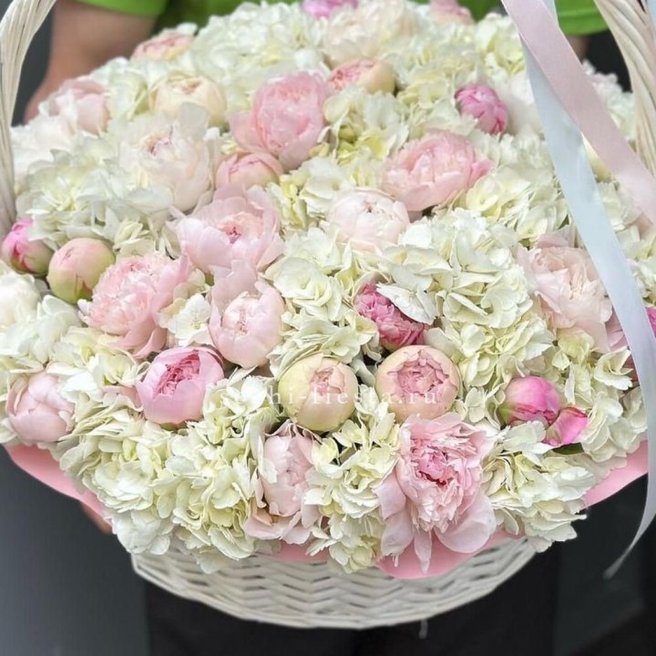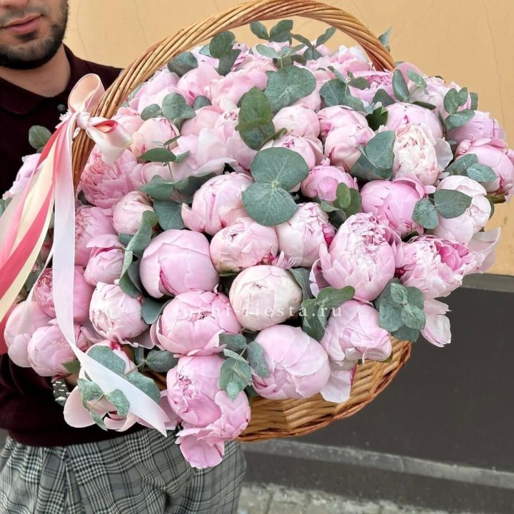 Состав корзин в Абакане определяется текущими поставками и сезоном. Розы Freedom, Mondial, Cappuccino — для классических куполообразных аранжировок. Пионы в мае-июне из свежих поставок: Sarah Bernhardt, Red Charm, Bowl of Cream — главный сезонный продукт. Хризантема, альстромерия, гербера — для объёмных торжественных наполнений. Эустома, ранункули — для садовых корзин. Флорист строит состав под конкретный запрос.