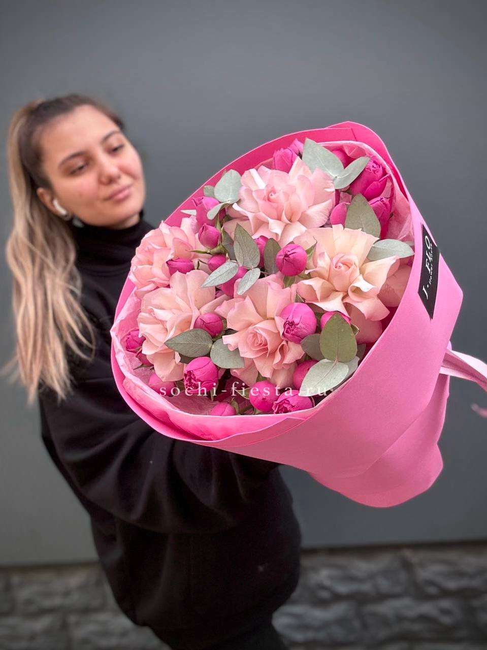 Для заказа товара "Букет французских и пионовидных роз "Ламиносо"" с доставкой в Абакане нажмите в корзину