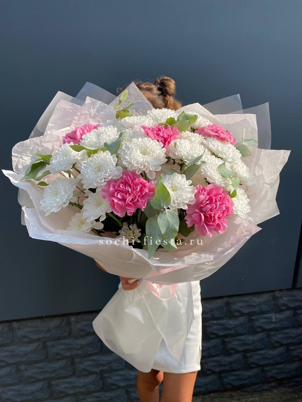 Для заказа товара " Букет хризантем и диантусов "Воздушный"" с доставкой в Абакане нажмите в корзину