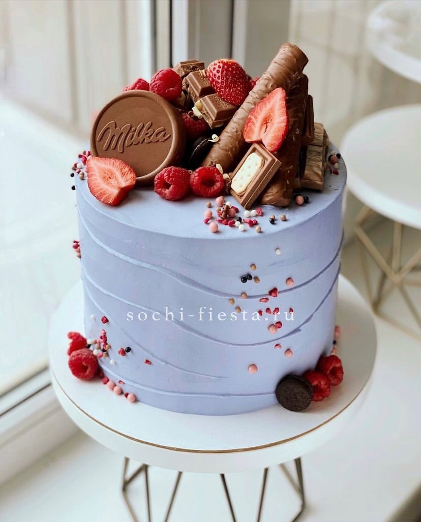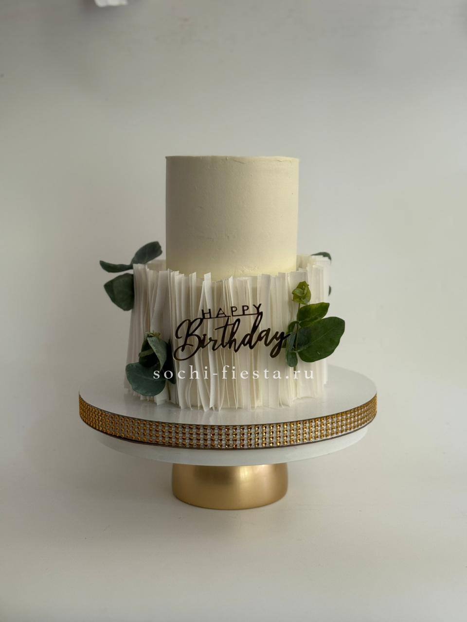 Компактный торт в зелёных тонах с весенним оформлением. Ручная работа и авторский декор делают каждый десерт уникальным. Две начинки на выбор для разных вкусовых предпочтений.